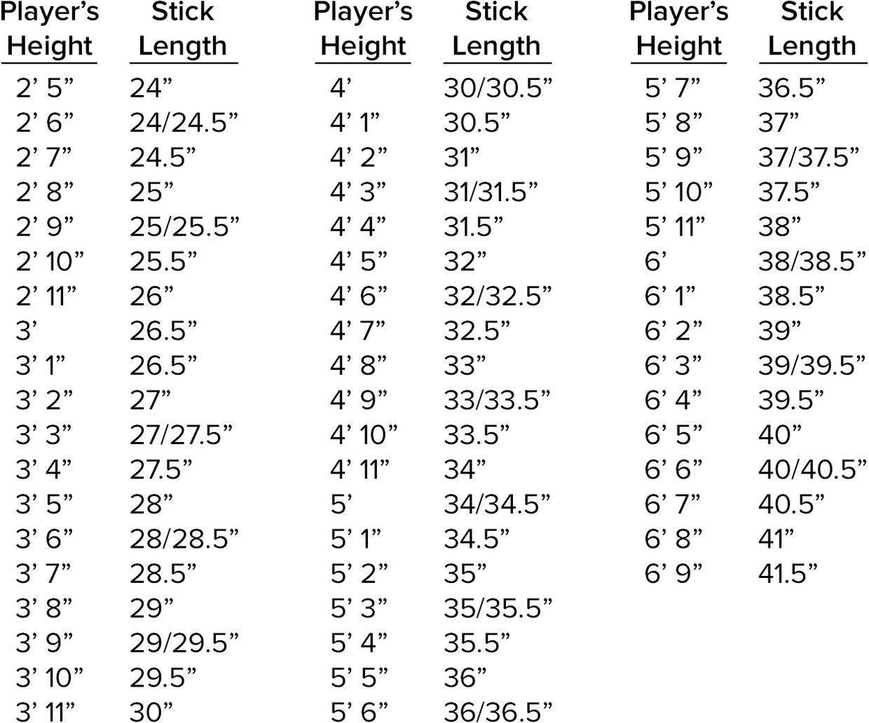 Field hockey sticks typically range from 28 to 38.5 inches with a few manufacturers making sticks as short as 24 inches and as long as 39.5 inches.