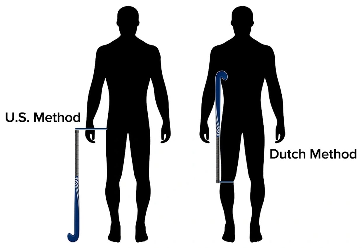 There are two methods for measuring the specific length needed for each player. The U.S. method is to measure from the floor to the top of your hip bone, while wearing cleats. Alternatively, the Dutch sizing method is to measure from the middle of the knee to the armpit.