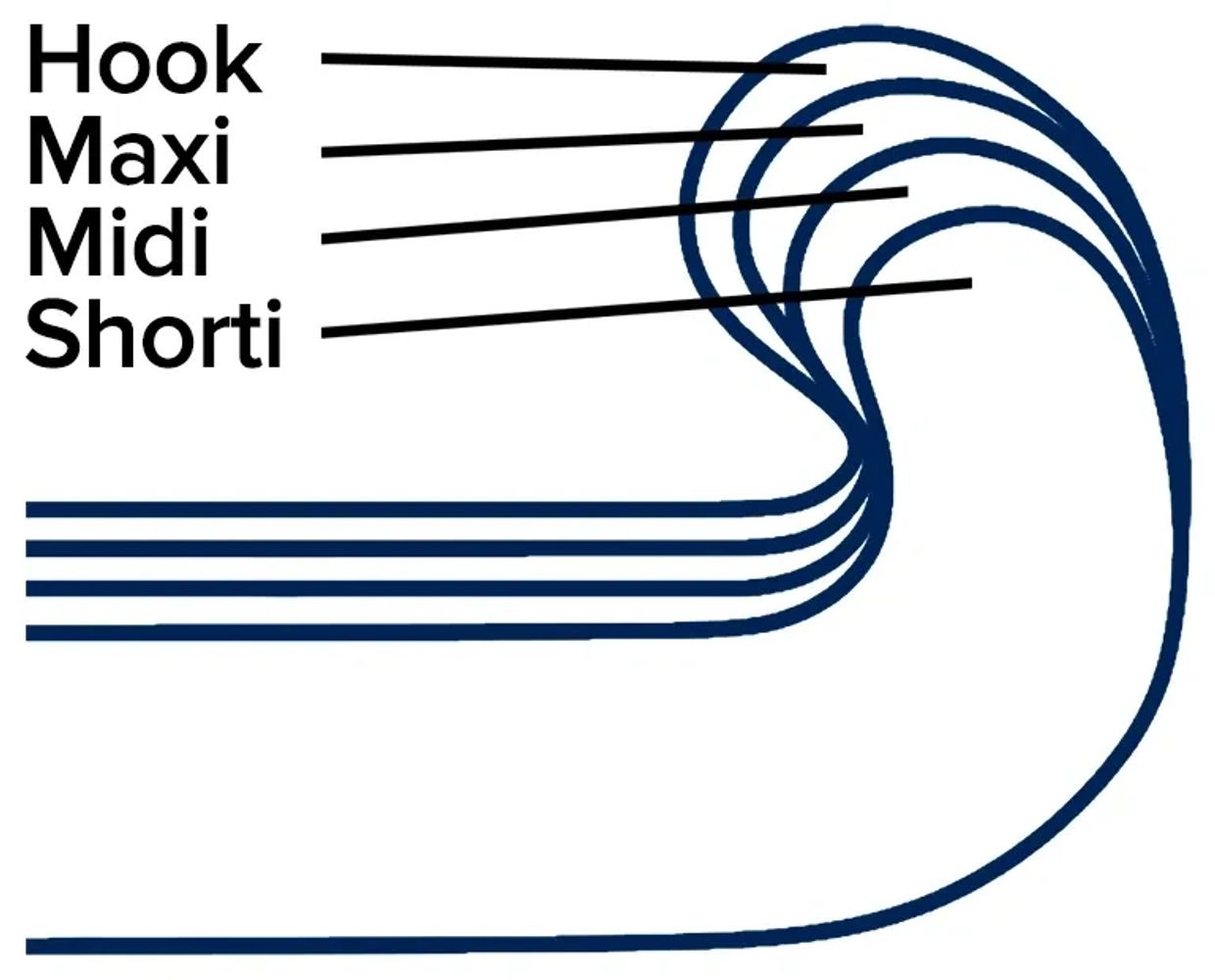 Shorti - A classic shape ideal for high speed, close control, and stick skills. This toe length is great for offensive players allowing for quickly turning the stick over the ball. Shorti toes are great for balance, maneuverability, and control. It has a smaller hitting area ideal for strikers.